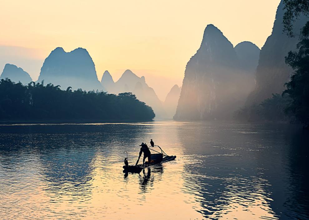 下午:乘车前往兴坪,拍摄兴坪古镇,是阳朔最为著名的明清建筑群,依山傍水,风景荟萃,粉墙乌瓦石板小巷,是漓江沿岸最美丽的古镇。来到漓江边观赏日落并拍摄漓江渔火——兴坪佳境(20元人民币背景),并加入渔夫,渔火,竹筏,撒网等风情小景。四百多年前,生活在江边的渔民开始驯养鱼鹰来捕鱼,每当夜幕降临,渔民们便乘上竹筏,点上火把,带上几只鸬鹚,成群结伙在漓江上吆喝,吸引保卫的鱼群,然后鸬鹚潜入水中,一条接着一条叼鱼出水……江面上,渔火穿梭如流萤飞舞,渔歌阵阵,构成一幅迷人的夜猎图,这种传统捕鱼方式被称作“漓江渔火”。