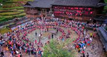 白天:早餐后往金坑观景区,拍摄“晒衣节”节庆活动。每年农历六月六的晒衣节是龙脊红瑶除春节外最隆重的一个传统节日。这一天,寨子里宾客盈门热闹异常,嫁出去的女儿和在外寨入赘的儿子,每年这个时候都要挑着鸭子、酒和礼品,背着小孩回到婆家吃团圆饭,家家户户包粽子过大节。每年六月六这一天,艳阳高照,每家每户都把箱底的花衣、饰衣、花裙拿出来晒,各家的晒排上、走廊上一串串红红绿绿的衣裳鲜艳夺目,“晒衣节”也应此而得名。