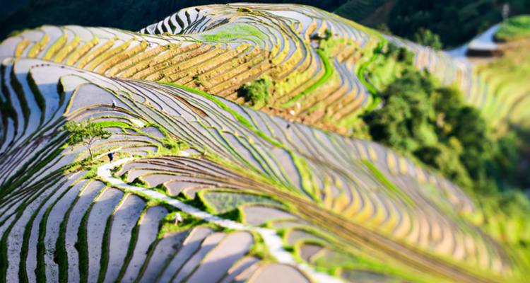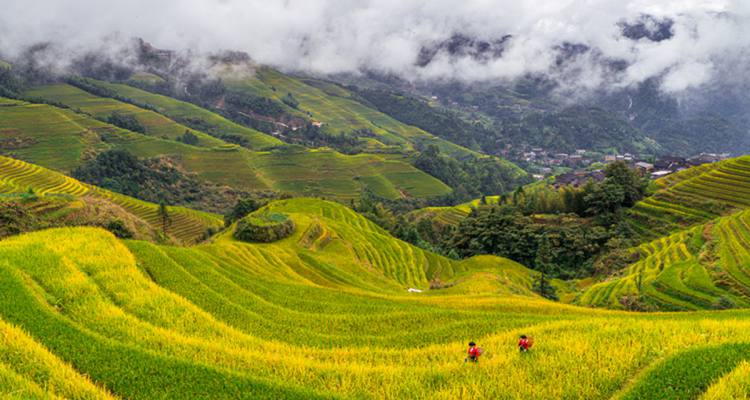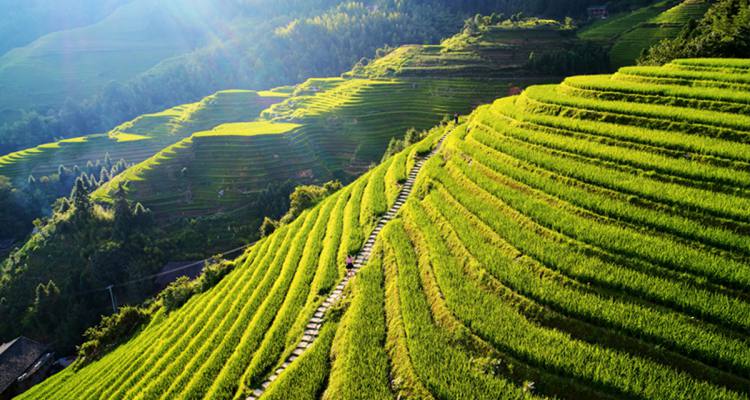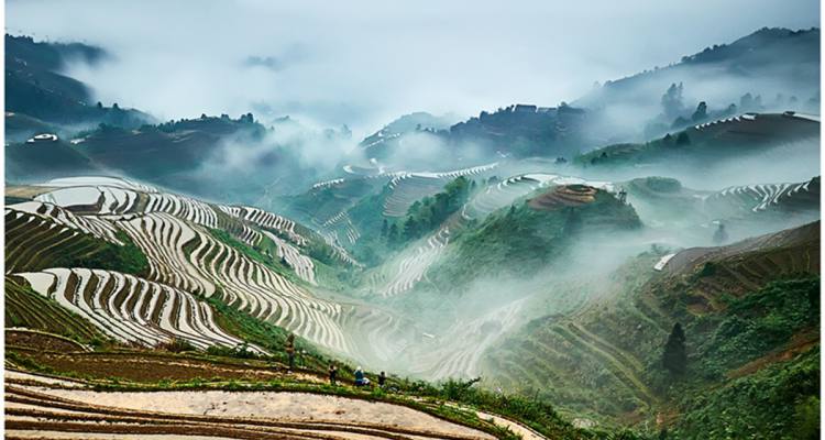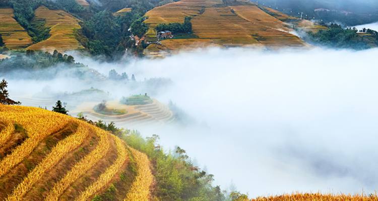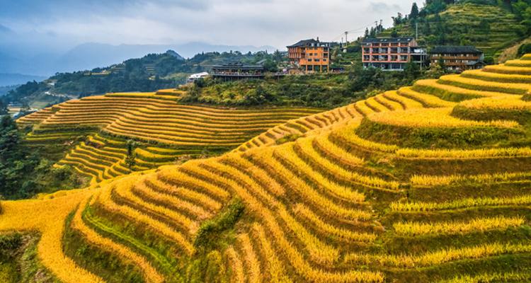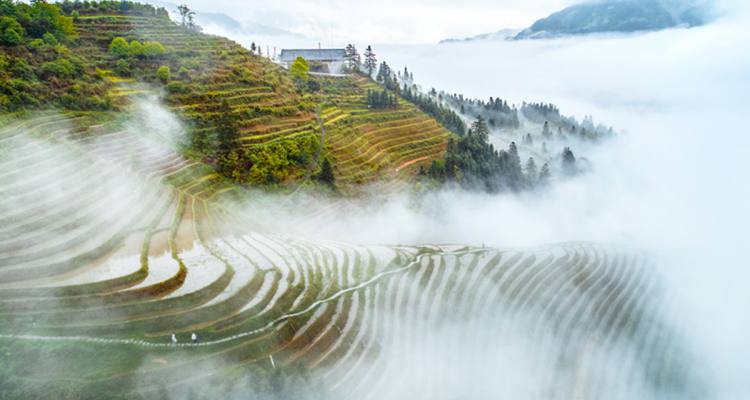 龙脊梯田,位于桂林市西部的龙胜县,分为平安观景区、金坑观景区、古壮寨观景区。